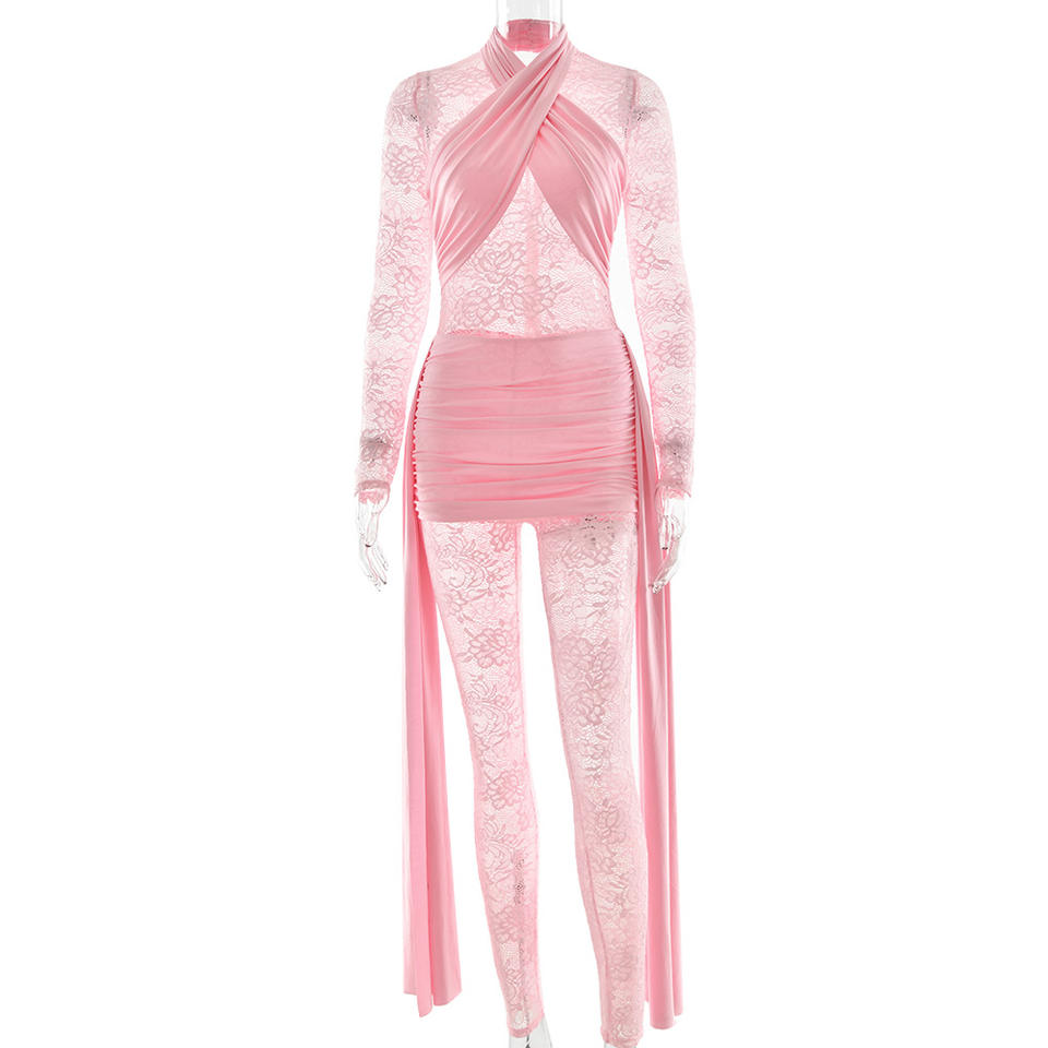 Body de encaje para mujer con cintas, ajuste ceñido, mono de fiesta, tela de poliéster fina y microelástica