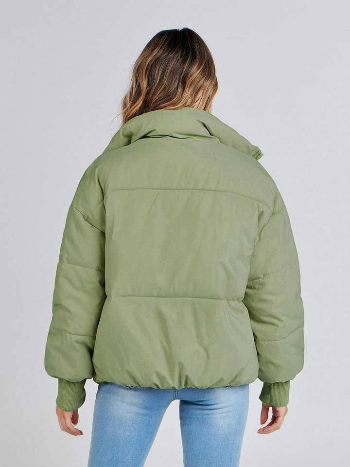 Chaqueta Corta de Mezclilla Acolchada Verde Claro para Mujer, Chaqueta de Invierno Cálida con un Solo Botón, Abrigo Grueso Informal para Clima Frío