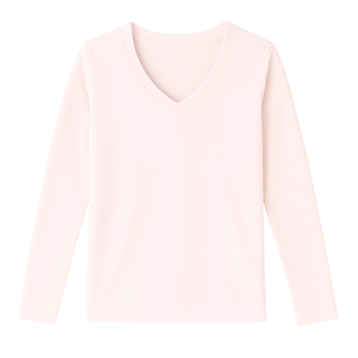 Camiseta de Manga Larga con Cuello en V para Mujer, Color Rosa Claro, 100% Algodón Orgánico de Lujo, Preencogido, Certificado GOTS, Ajuste Clásico, Suave y Premium