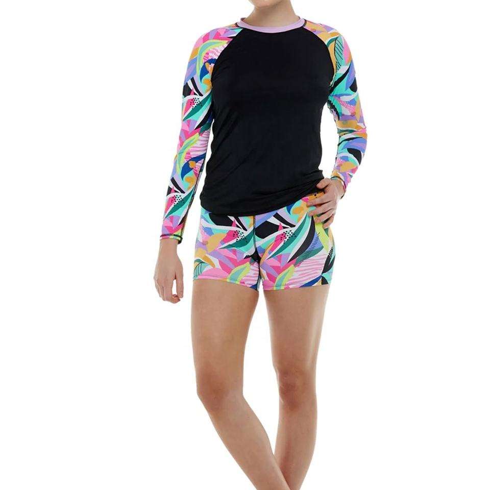Conjunto de Camiseta de Manga Larga para Mujer con Protección UV UPF 50+, Estampado Floral, Traje de Baño Deportivo de Dos Piezas para Surf
