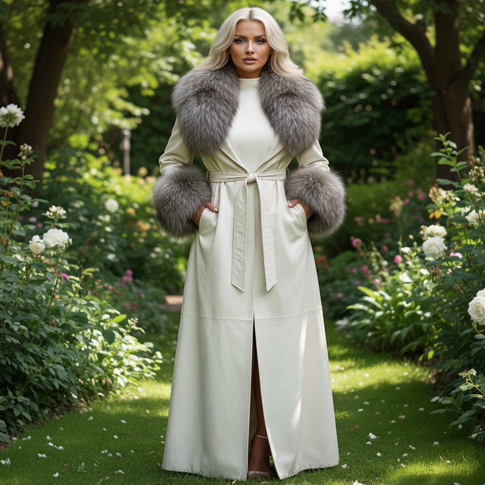 Abrigo largo de piel de pez para mujer con diseño de cinturón y forro de seda personalizado, con piel de zorro, al por mayor