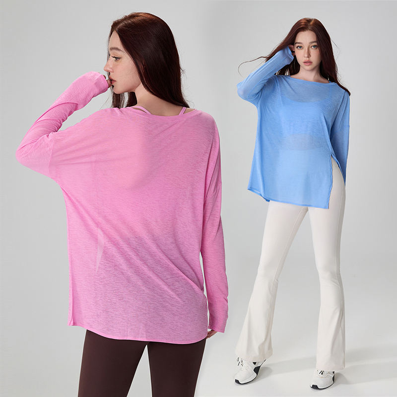 Camiseta holgada de manga larga con cuello redondo para mujer, Tops de manga larga de Color sólido para baile, entrenamiento, clase de Ballet, ropa de baile
