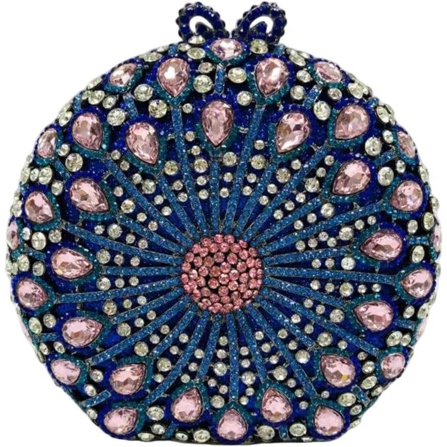 Bolso de Noche de Lujo para Mujer, con Pedrería Redonda, Diseño Floral, Cristal, Azul y Rosa, para Bodas, Salidas Nocturnas y Banquetes
