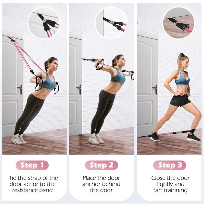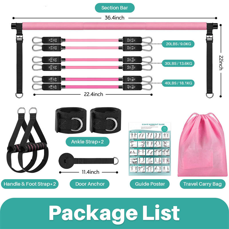 Equipo Entrenamiento Gimnasio en casa Yoga Pilates Bar Kit con bandas de resistenciaNombre del producto