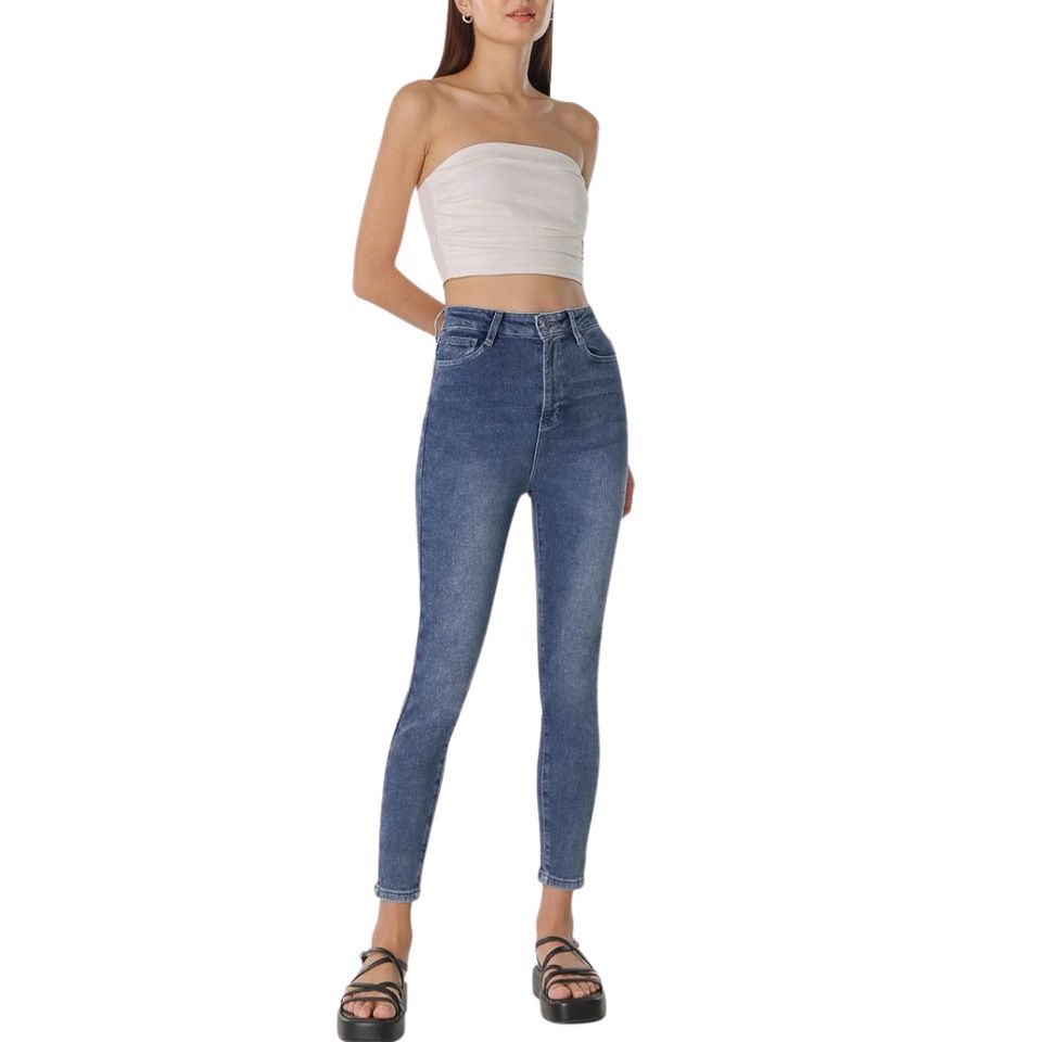Jeans de Mezclilla de Pierna Recta y Tiro Medio para Mujer, Corte Regular, Silueta Ajustada, Azul Claro, Mezclilla Suave, Transpirable, Casual, con Borlas para Uso Diario