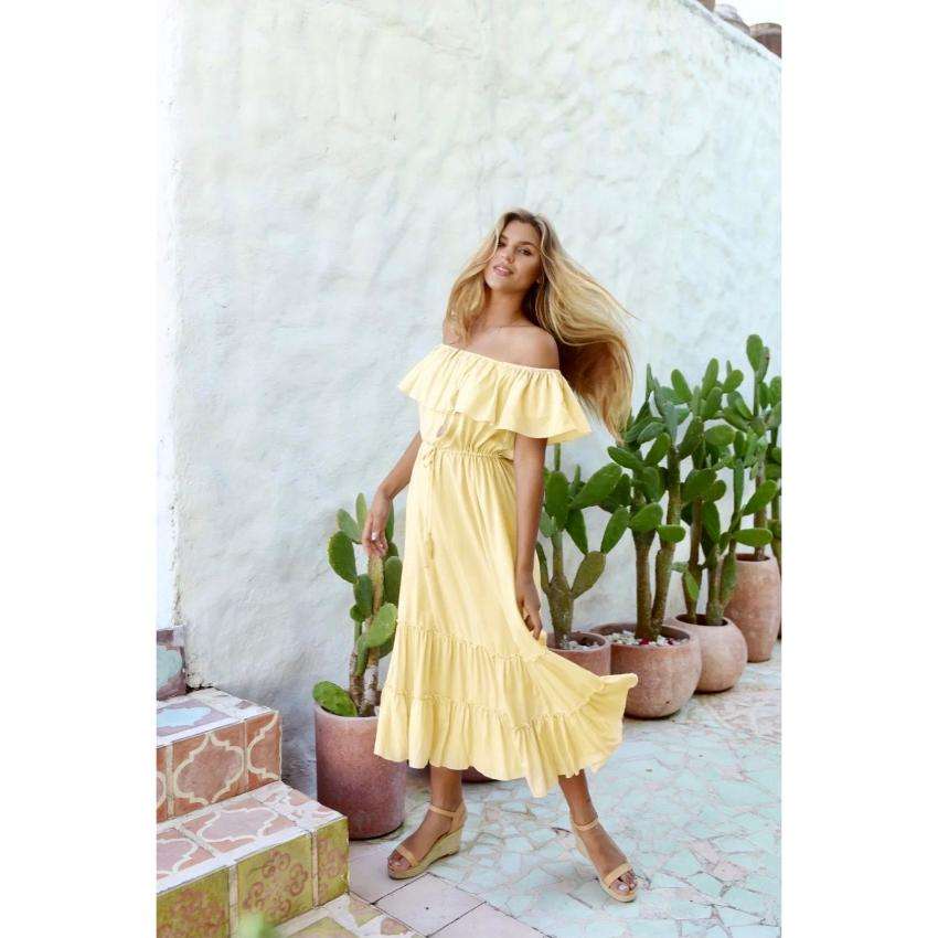 Vestido Largo Bohemio de Verano para Mujer, con Hombros Descubiertos, Volantes, Ecológico, Lavable, 100% Algodón, Cintura Elástica