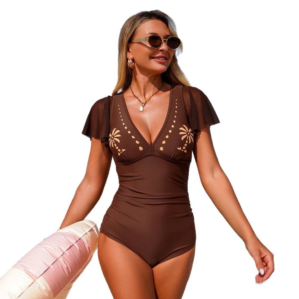 Traje de baño de una pieza para mujer, traje de baño elástico con cuello en V profundo y color sólido para playa, deportes acuáticos, moda, Fitness, moldeador del cuerpo