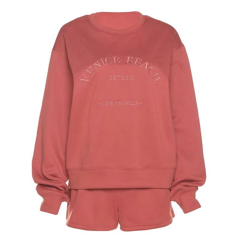 Conjunto de Sudadera y Pantalones Cortos Extra Grandes para Mujer, Corte Regular, Cómodo, Dos Piezas, por Encima de la Rodilla, Tejido Sólido Informal para Usar
