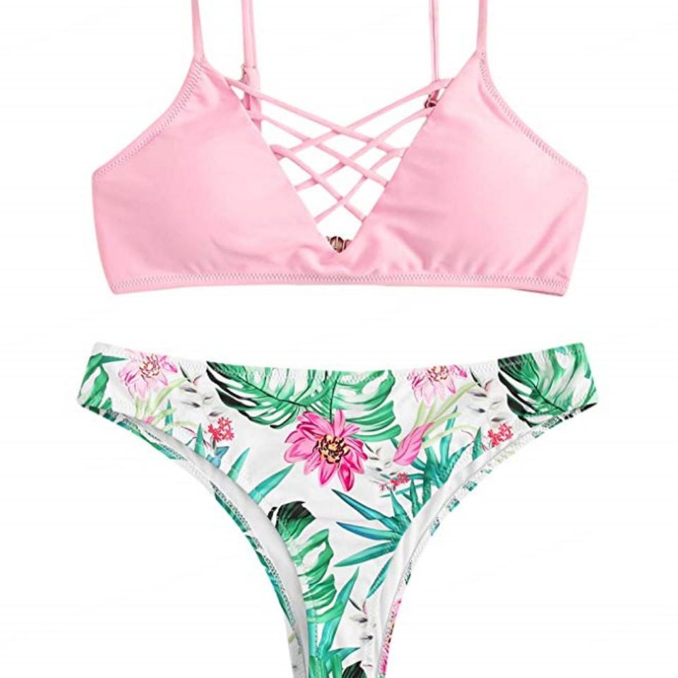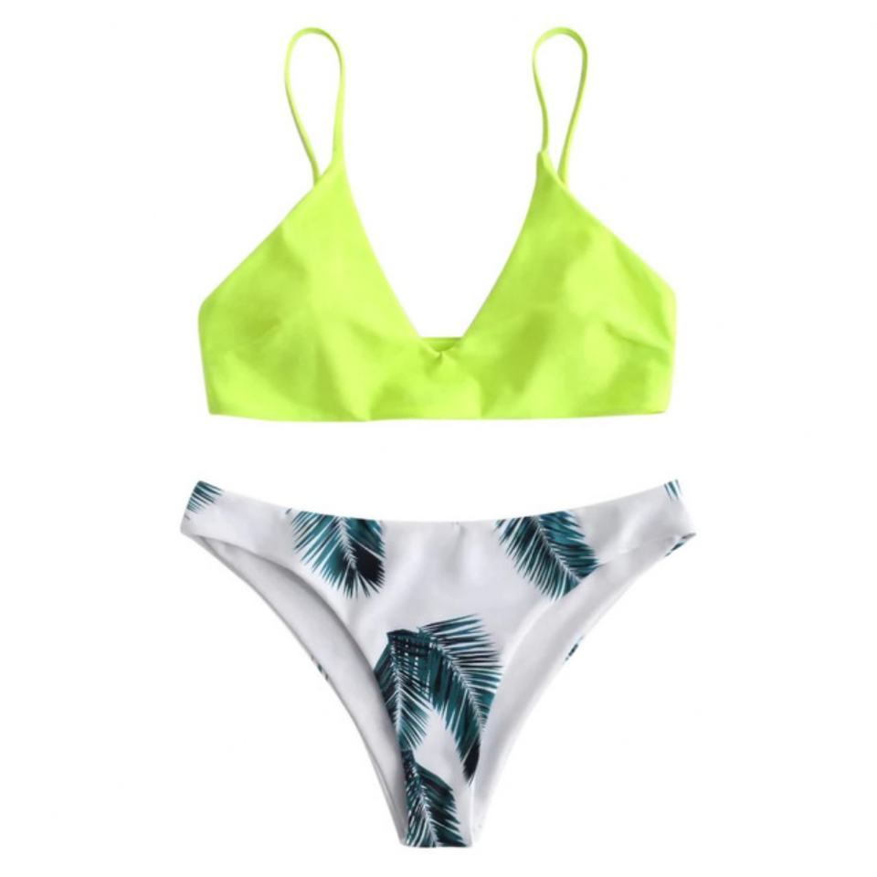 Conjunto de Bikini de Una Pieza con Protección UV para Mujer, Talla Grande, Estampado, Top con Cordones y Logotipo Frontal, Braguita de Tanga, Traje de Baño para Playa