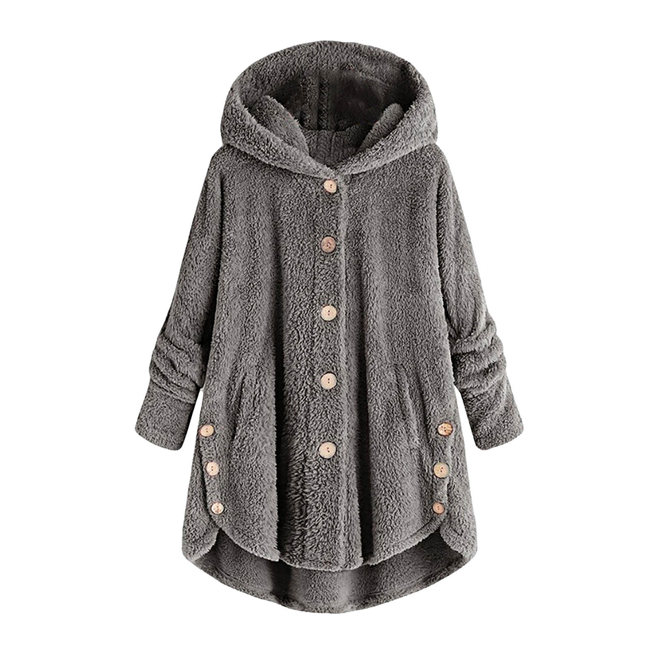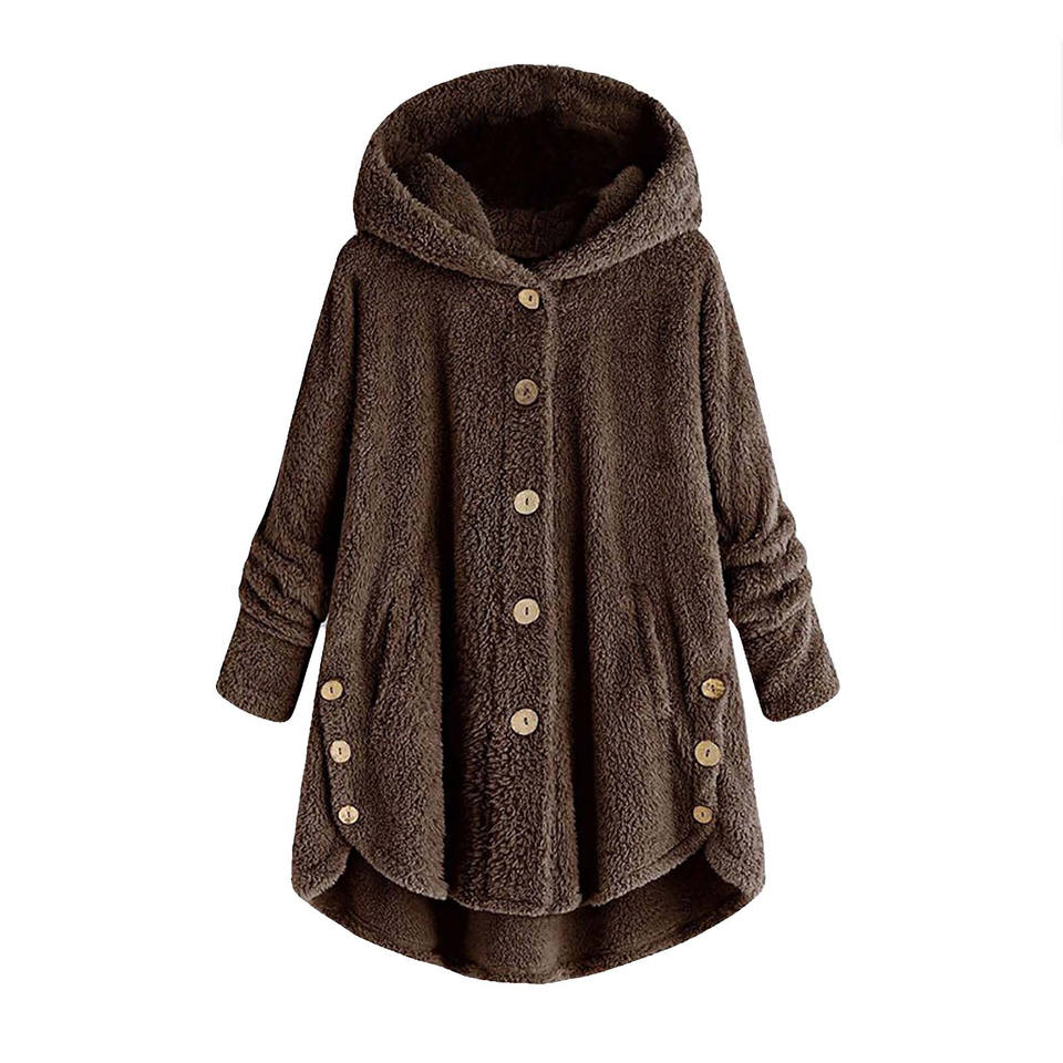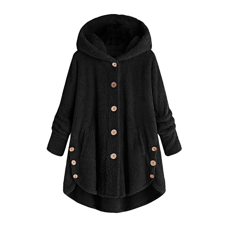 Abrigo de peluche de felpa con capucha de gran tamaño para mujer, chaqueta de ráfaga suave abotonada para Otoño Invierno, prendas de vestir cálidas sueltas en tallas
