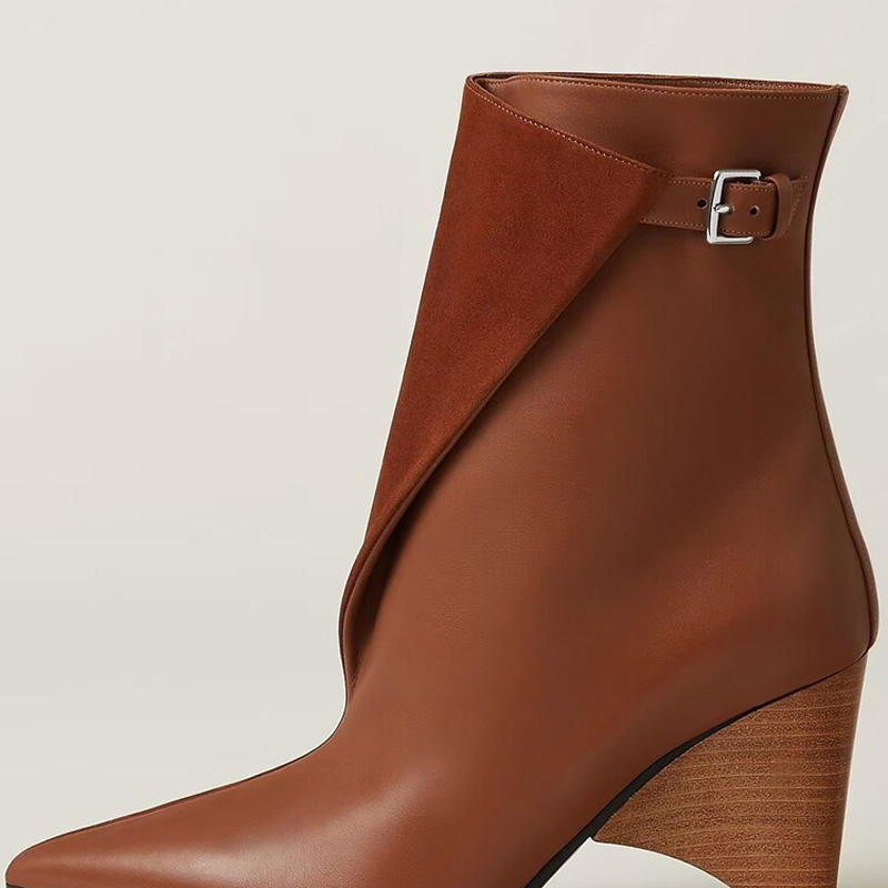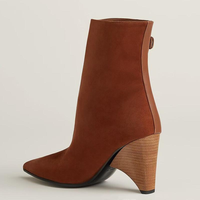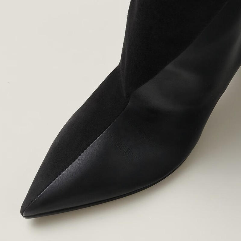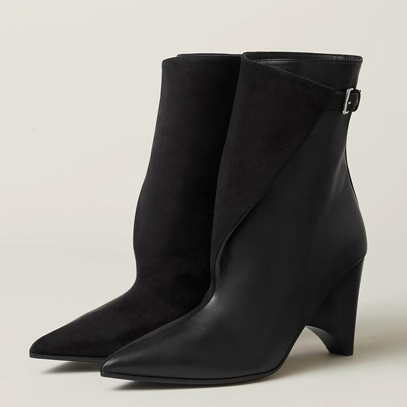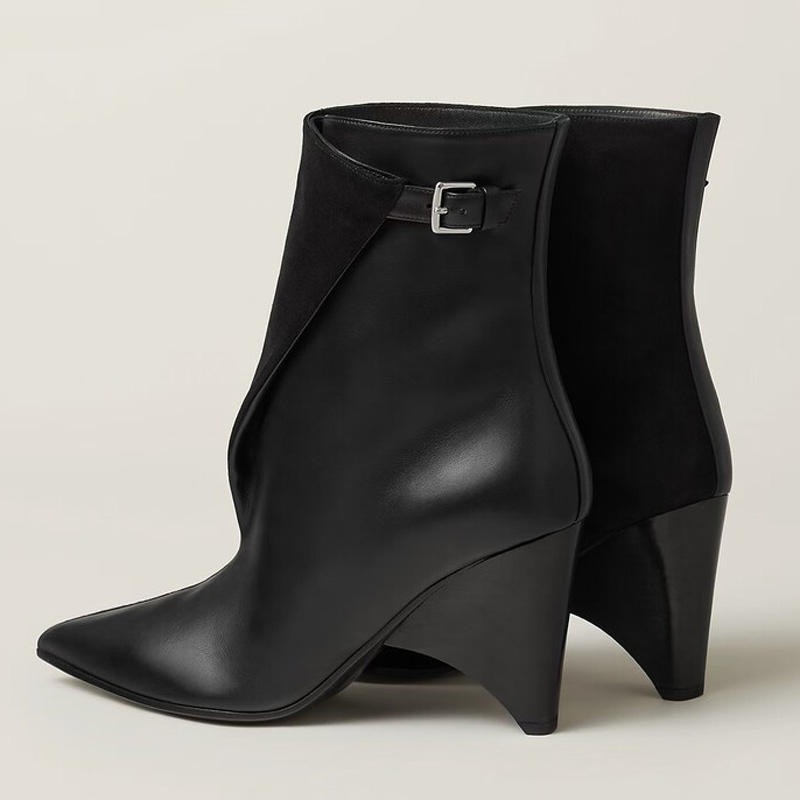 Botines de mujer con punta en pico, de gamuza y cuero con patchwork, hebillas metálicas, tacón original, sexys, transpirables, de algodón para otoño
