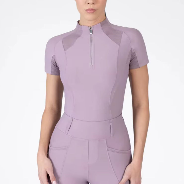 Camiseta de Equitación Profesional para Mujer, Ligera, de Manga Corta, Transpirable, Tejido Elástico, Servicio OEM