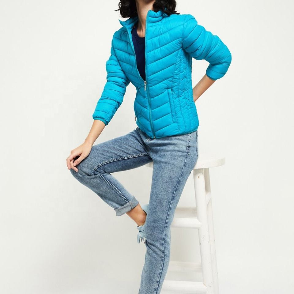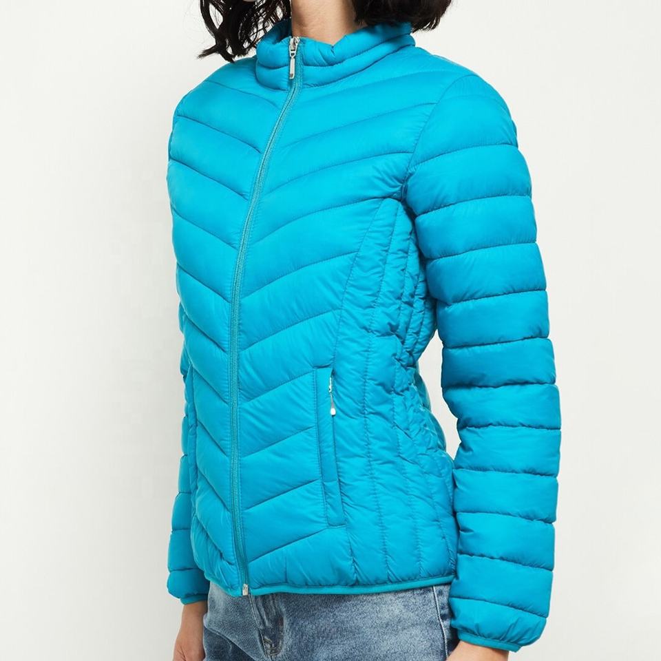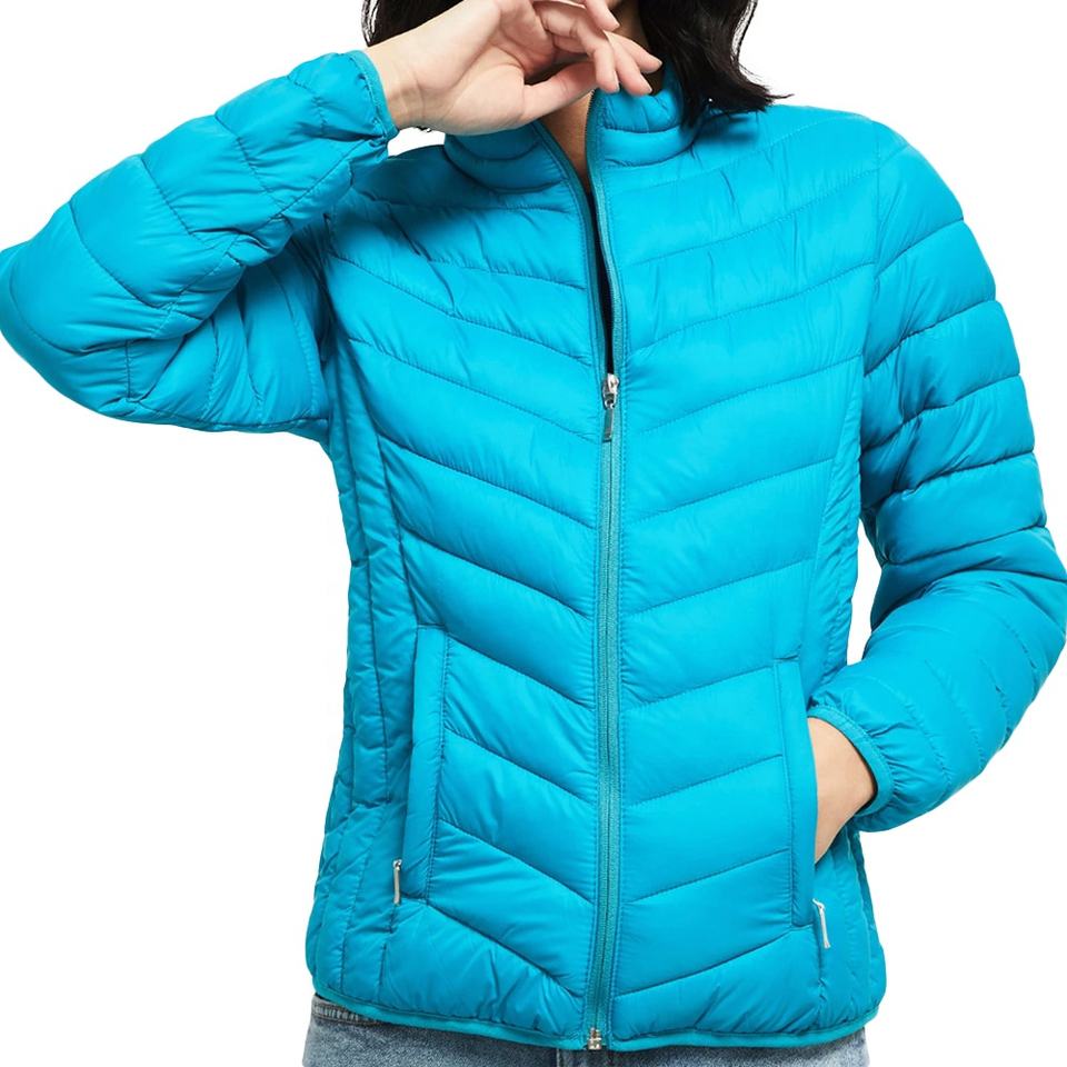 Chaqueta acolchada para mujer, diseño de logotipo personalizado, resistente al agua cálida de invierno, transpirable, teñida lisa, chaqueta de burbujas para mujer