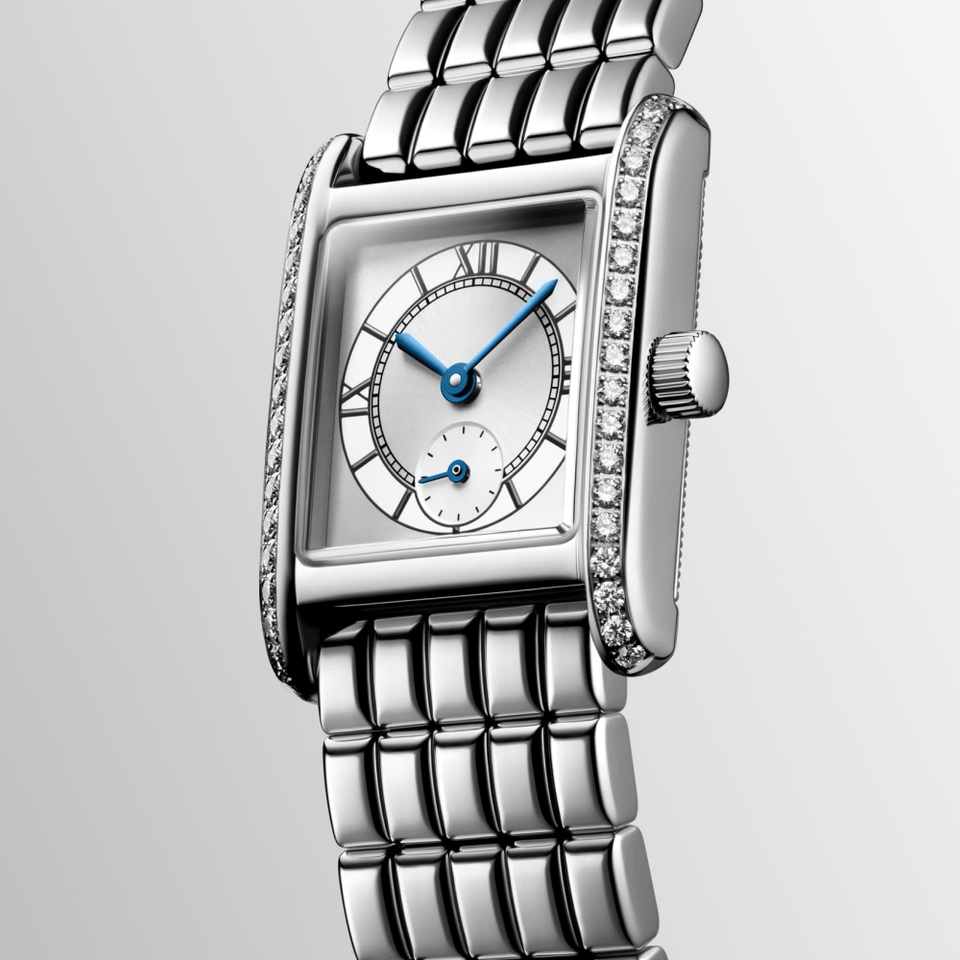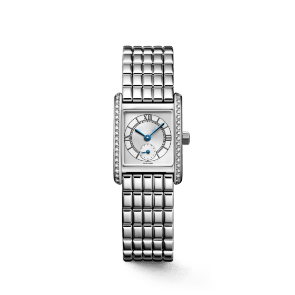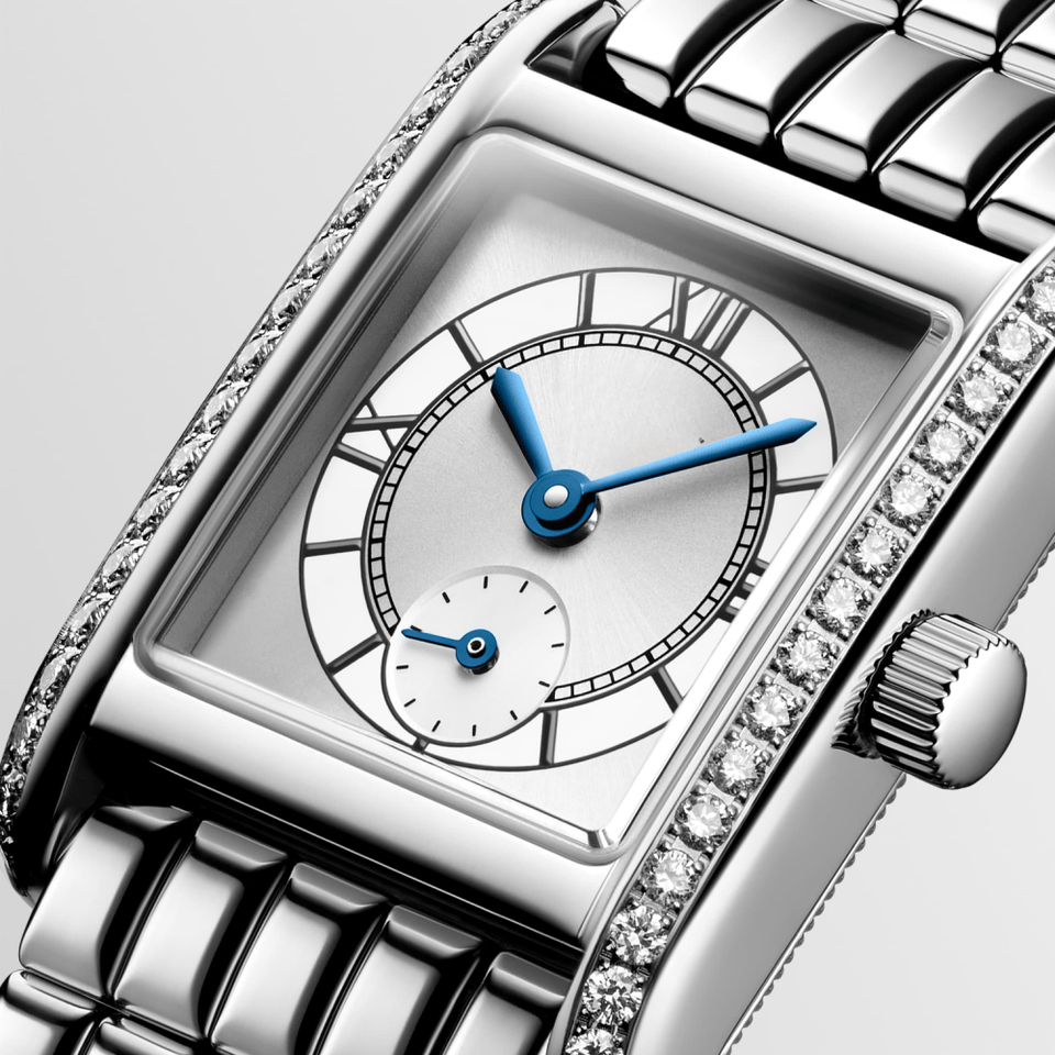 Reloj de Cuarzo para Mujer, Rectangular, Bisel con Diamantes, Números Romanos, Correa de Acero Inoxidable, Esfera Pequeña para Segundos, Reloj de Pulsera Longinesing
