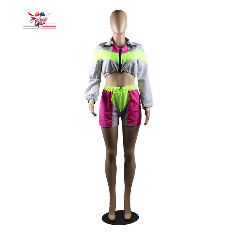 Conjunto reflectante de dos piezas para mujer Ropa de mujer Festival Crop Top y pantalones cortos de motorista para mujer Chándal de Viky Industries