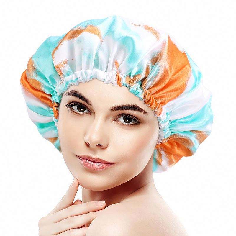 Gorro de Ducha Reutilizable para Mujer, Ajustable, de Doble Capa, de EVA y Satén, Impermeable, para Baño, Playa, Uso Casual