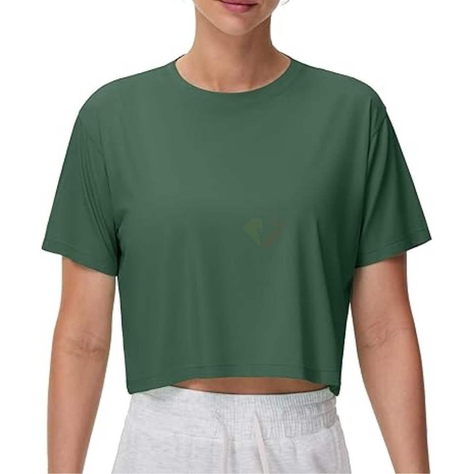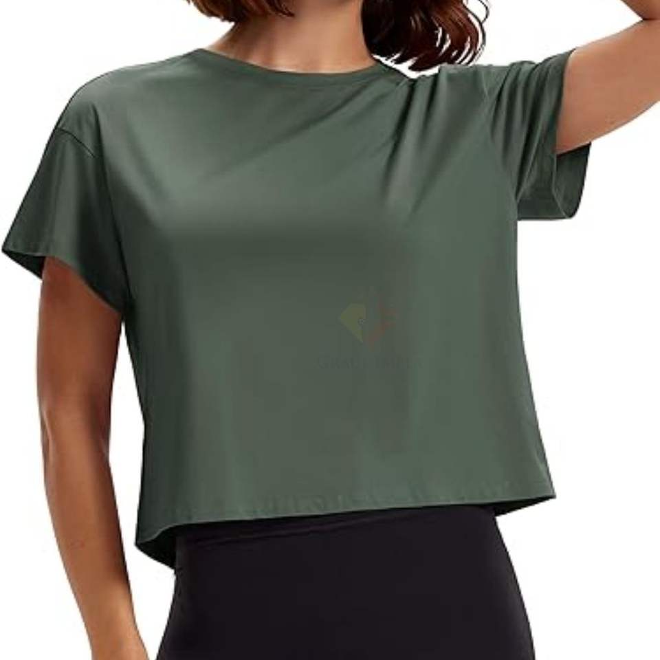 Top de Yoga Acanalado para Mujer, Corte Ajustado, Cuello Alto Simulado, Manga Corta, Top Corto, Nylon Spandex, Ropa Deportiva para Gimnasio, Fabricante OEM Personalizado