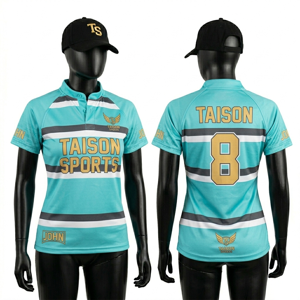 Camiseta de Rugby para Mujer, Poliéster GSM Premium Transpirable, Color Rosa Coral Marino, Paneles de Manga en Contraste, Logotipo Sublimado Personalizado