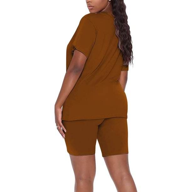 Conjuntos de dos piezas para mujer, conjunto de pantalones cortos de motorista con cuello de pico de manga corta, traje de verano