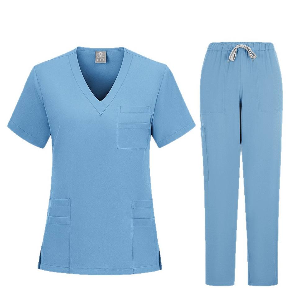 Women Scrub Set V-Neck Short Sleeve Pants Moisture Wicking Hospital Uniforms Split Set Knitted Fabric S XXL