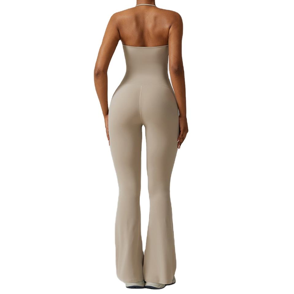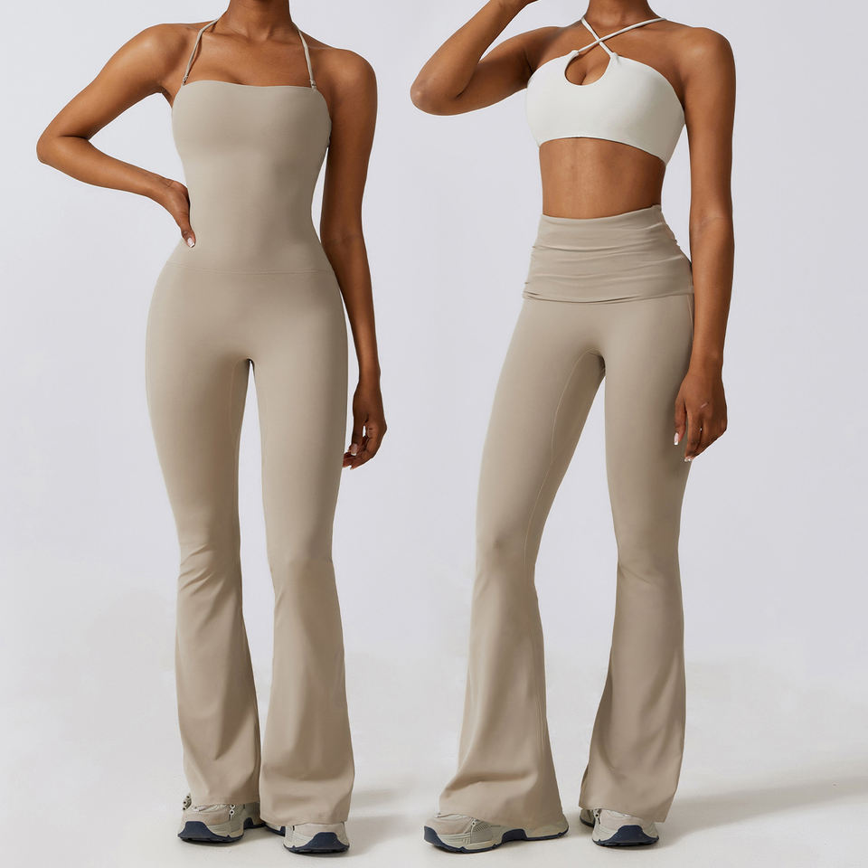 Mamelucos y sujetador sexis para mujer, pantalón acampanado para mujer, niñas, Yoga elástico, correr, entrenamiento, baile, espalda, una pieza, Sexy Halter, Gym3pcs