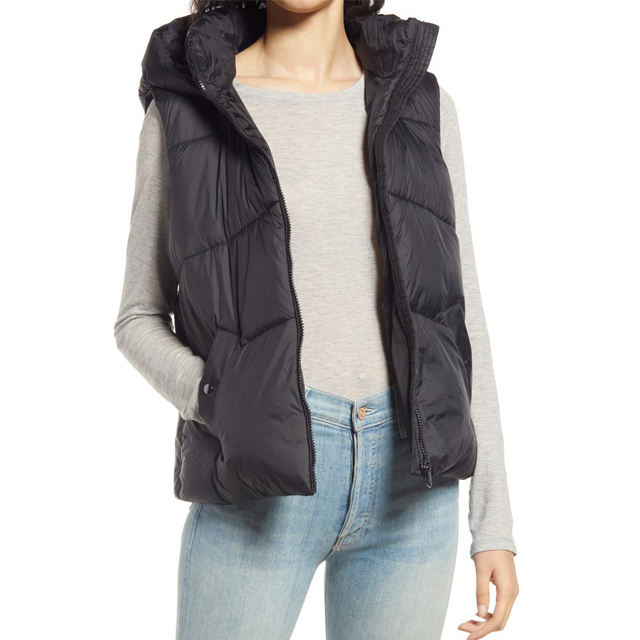 Chaleco acolchado sin mangas para mujer, carcasa exterior de poliéster 100%, carcasa interior de fibra de poliéster 100%, chaleco acolchado transpirable