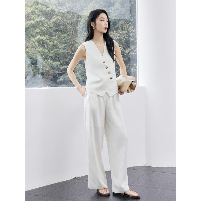Women Sleeveless Vest Solid Color Button Front Summer Casual Work Wear Two Piece Set