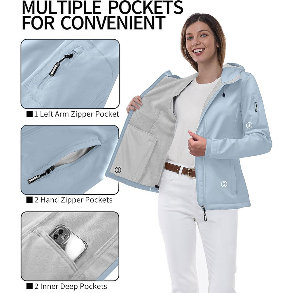 Chaqueta Softshell para Mujer, Transpirable, Resistente al Agua, con Capucha, Cortavientos, de Secado Rápido, para Otoño y Todas las Estaciones, con Bolsillos Ajustables con Cremallera