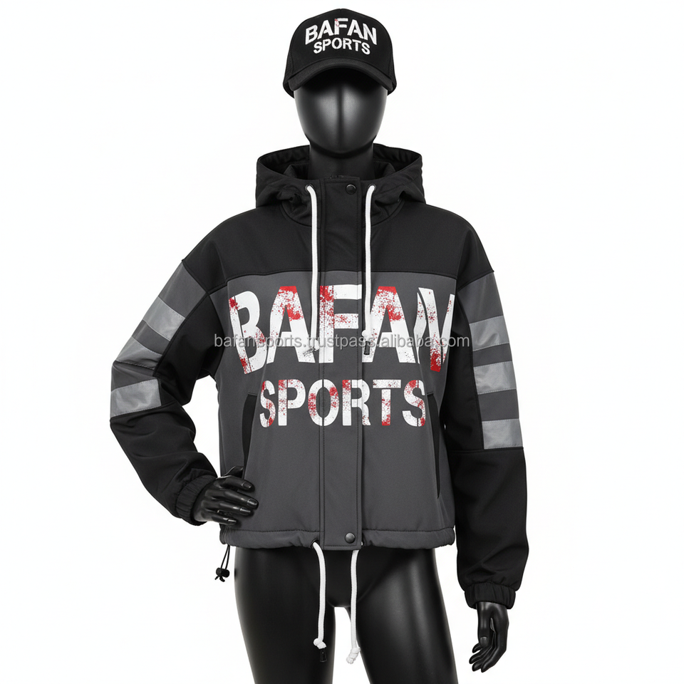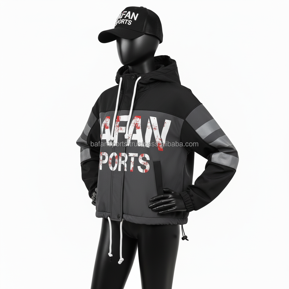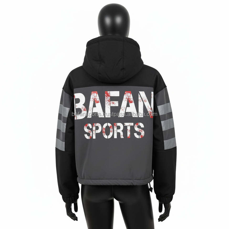 Chaqueta Softshell para Mujer, Resistente al Viento y al Agua, Negra y Gris, Panel Reflectante, Logotipo Personalizado, Impresión Serigráfica