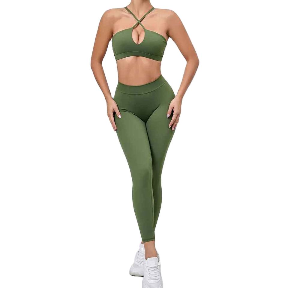 Conjunto deportivo para mujer, traje de Yoga acanalado transpirable para Fitness, sujetador cruzado para correr, mallas de entrenamiento con cintura elástica para gimnasio,