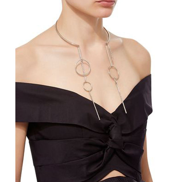 Collar de cadena con estilo para mujer, gargantilla de plata con cuello abierto