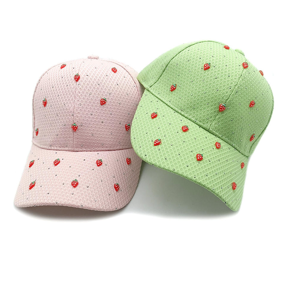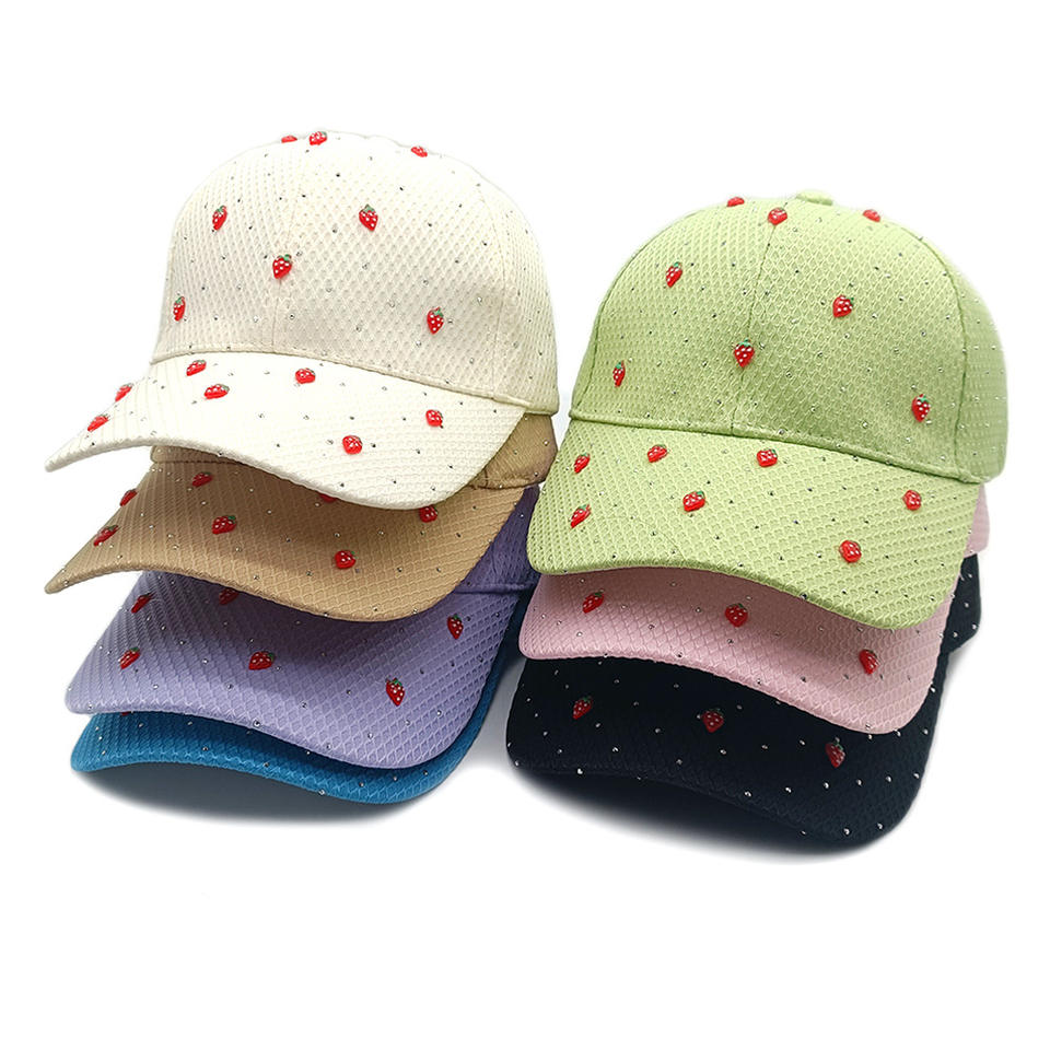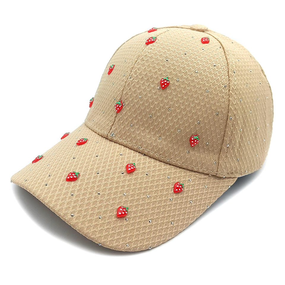 Gorra de Béisbol con Pedrería de Fresa para Mujer, Sombrero de Sol Transpirable de Verano con Decoración de Fresa para Uso Diario al Aire Libre