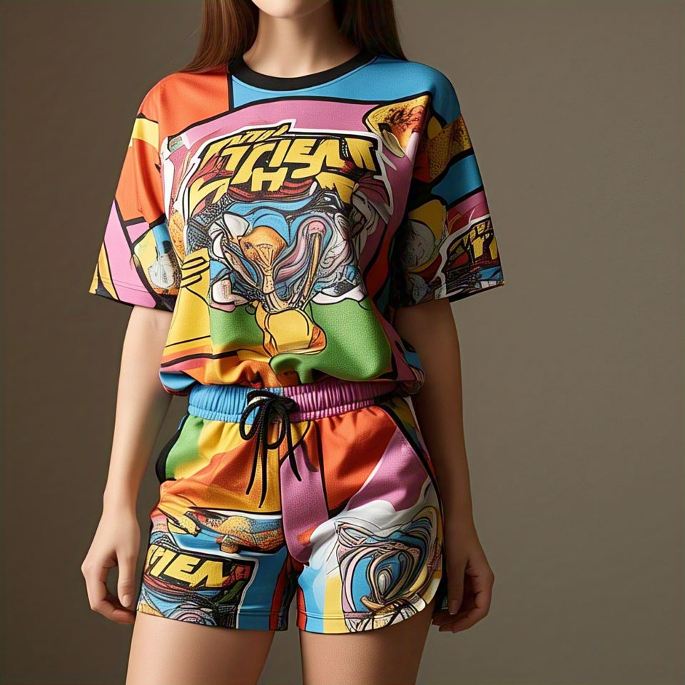 Nombre del producto:Camiseta y pantalones cortos de la sublimación de las mujeres