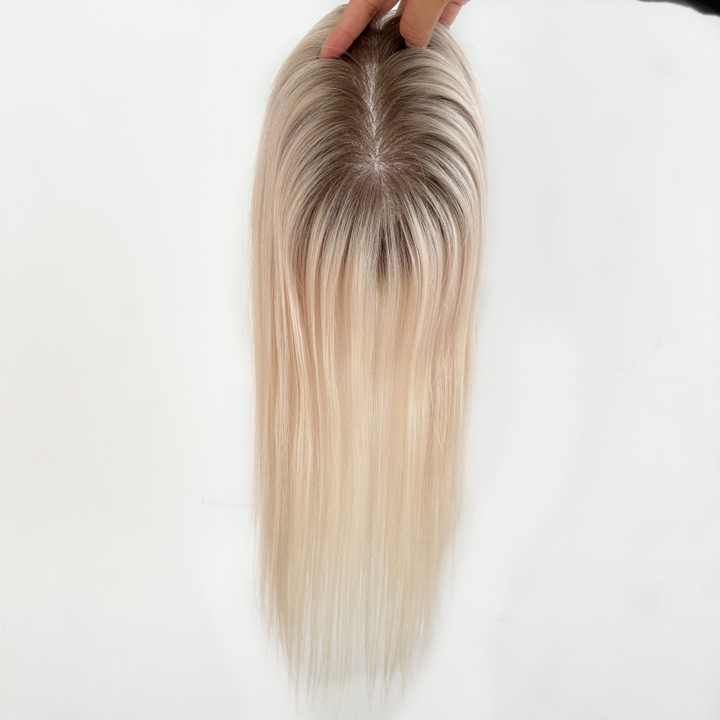 Topper para mujer con clips, efecto natural, fácil de usar, postizo de base mono.