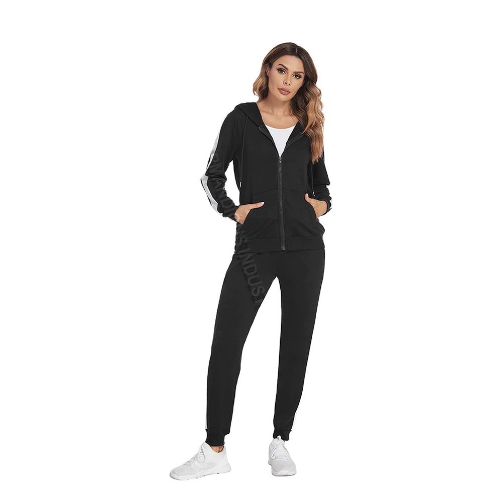 Conjuntos de chándal para mujer, bloque de Color sólido, cremallera completa, con capucha y pantalón largo, chándal de dos piezas, chándal 2024