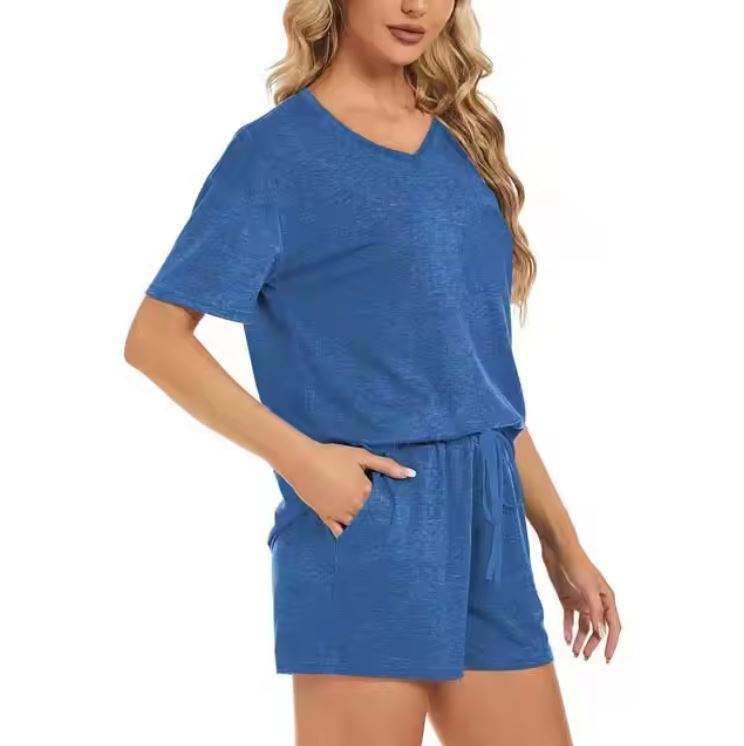 Camiseta de verano de dos piezas para mujer y conjuntos cortos 95% algodón peruano 5% Spandex conjuntos gemelos personalizados completos para mujer