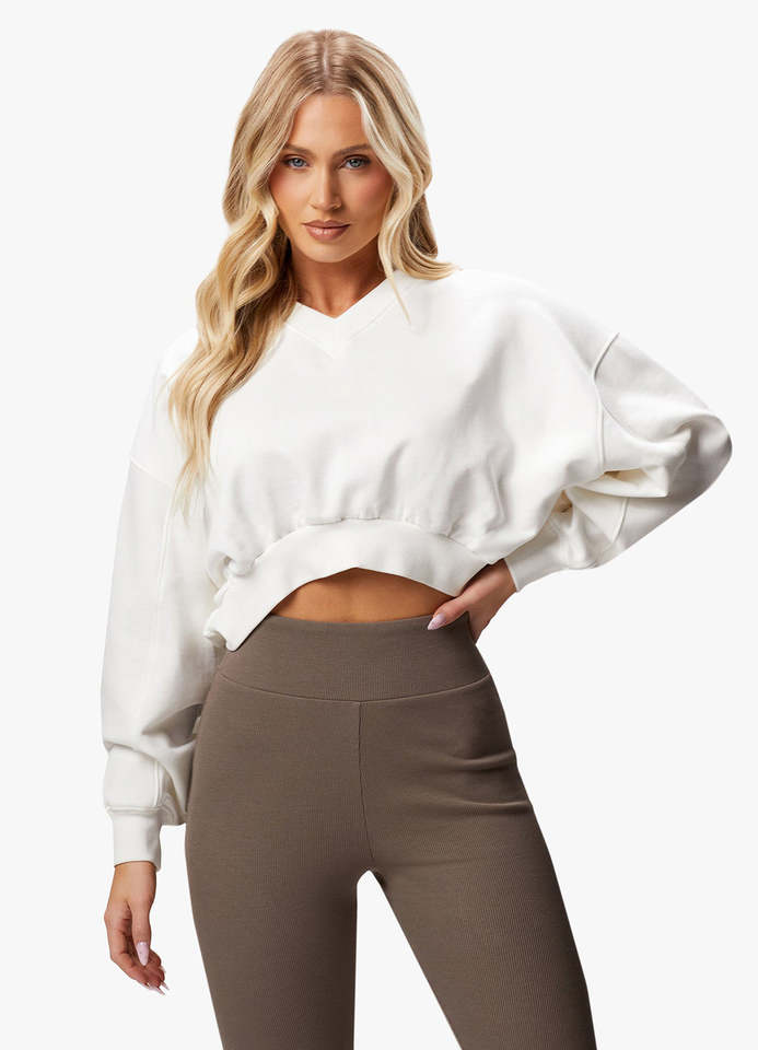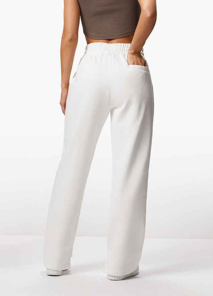 Conjunto de dos piezas para mujer, sudadera y pantalones, forro polar blanco sólido, ropa informal para damas, ajuste cómodo y relajado.