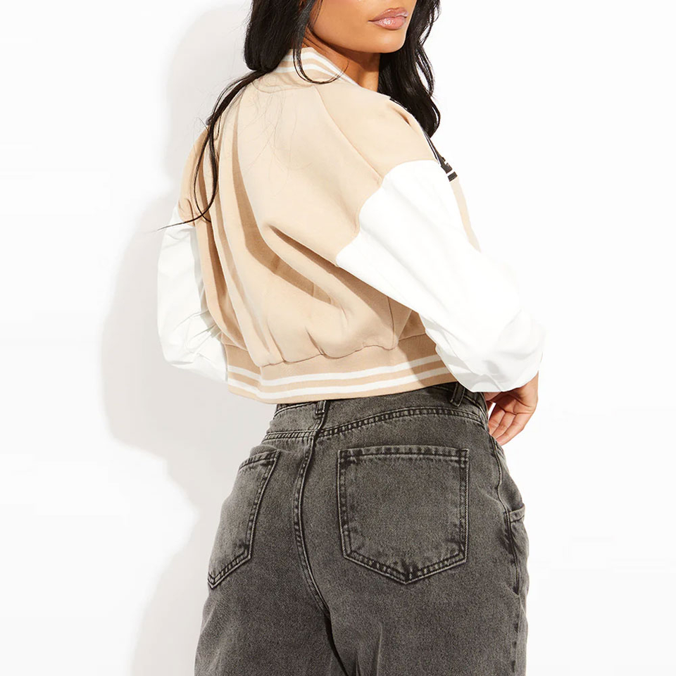 Chaqueta universitaria para mujer con estilo informal y apariencia de campus Chaqueta universitaria corta de tela suave para mujer a la venta