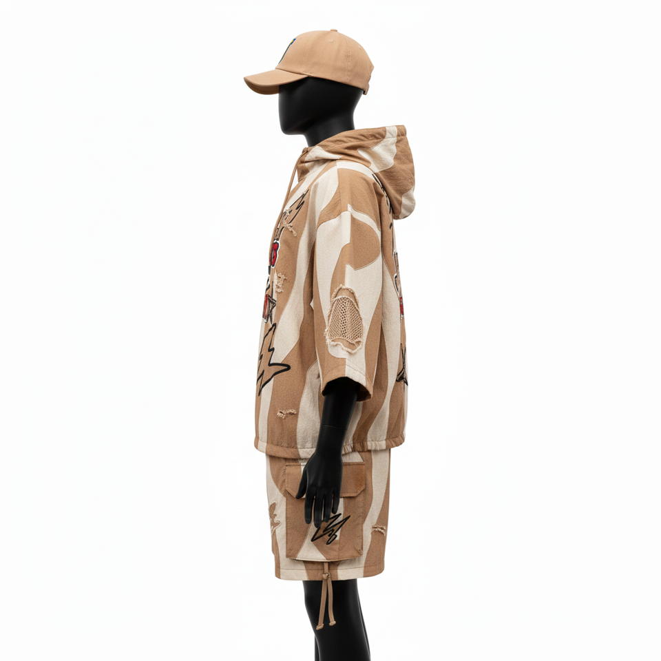 Conjunto Corto de Chaqueta Cortavientos para Mujer, Poliéster, Resistente al Viento, Panel de Color, Logotipo Bordado, Transpirable, Conjunto de Shorts de Verano