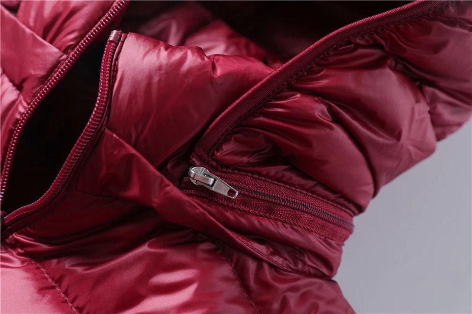Abrigo Largo Ajustado con Capucha para Mujer, Invierno | Ropa Exterior Abrigada, Impermeable, Ultraligera y Plegable con Cuello Alto para Tallas Grandes
