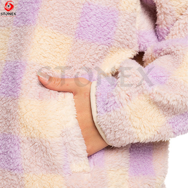 Sudadera de alta calidad de tendencia cálida de invierno para mujer, Sudadera negra a cuadros, sudadera de lana Polar superventas