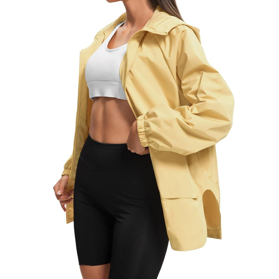 Chaqueta cortavientos con capucha impermeable amarilla para mujer, impermeable ligero, para exteriores, senderismo, correr, a prueba de viento, de secado rápido, informal, para viajes
