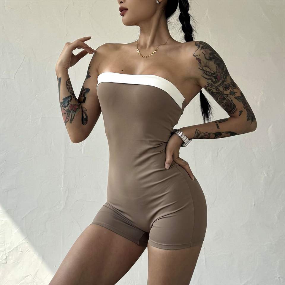 Mujeres y niñas alta compresión elástica secado rápido moda Yoga gimnasio pantalones cortos dos tonos acolchado una pieza mameluco de entrenamiento