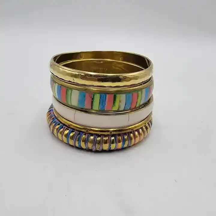 Nuevas pulseras elásticas de madera y resina de dos tonos para mujeres y niñas, elegantes brazaletes de moda artesanales indios de la India