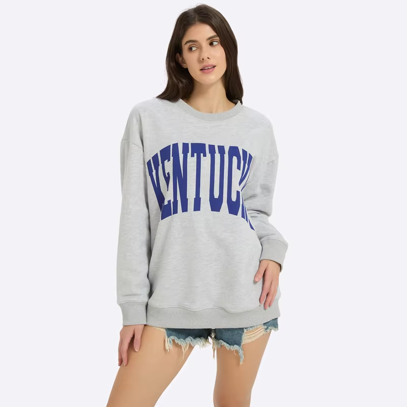 Sudadera larga de mezcla de poliéster/algodón para mujer, Jersey ligero de manga larga con cuello simulado y logotipo personalizado, Otoño Invierno