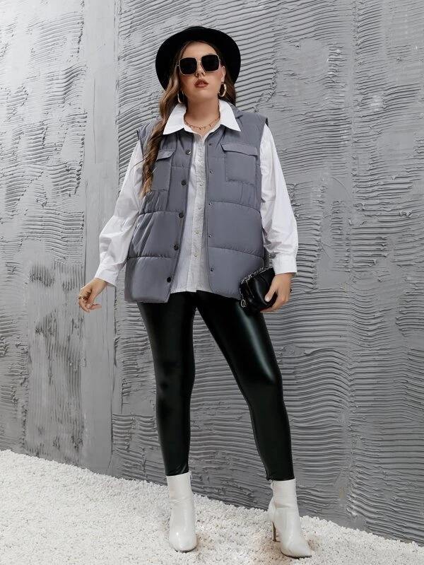 Chaleco acolchado de poliéster 100% para mujer, chaquetas informales con cremallera sin mangas, abrigo cálido de invierno