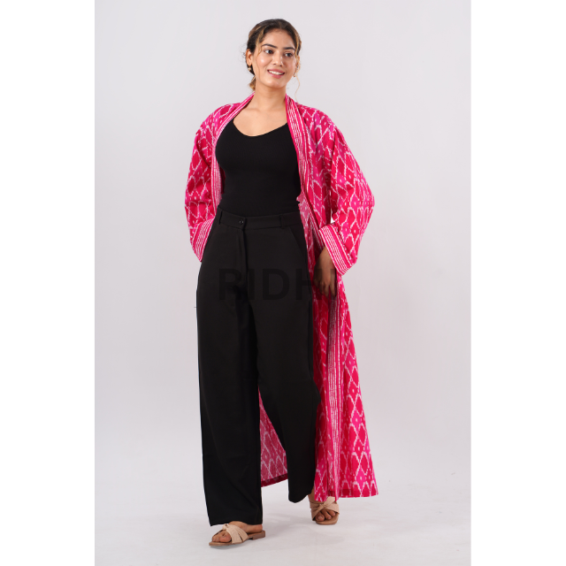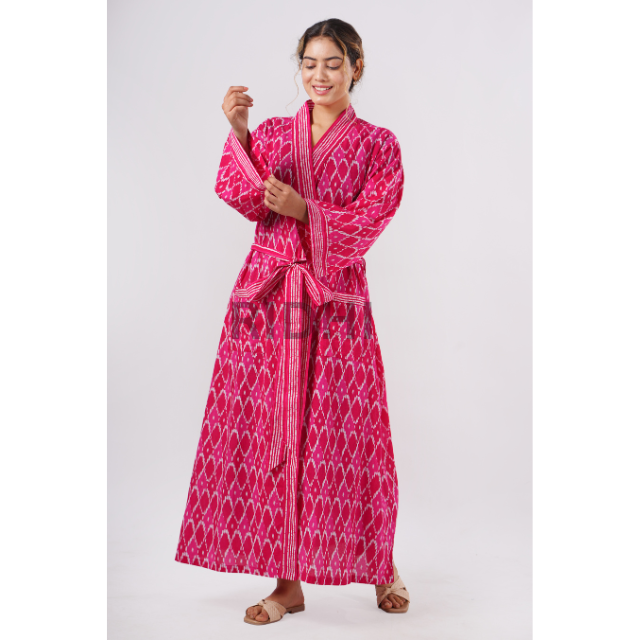 Nombre del producto:Kimono rosa con estampado de algodón