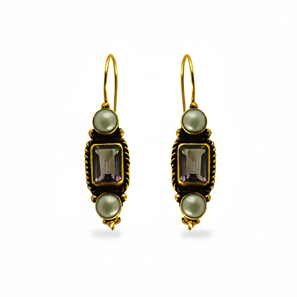 Pendientes de Gota con Piedras Preciosas y Baño de Oro de 14k para Mujer, con Cuarzo, Perla y Diamante en Forma de Gota de Agua, para Bodas y Fiestas