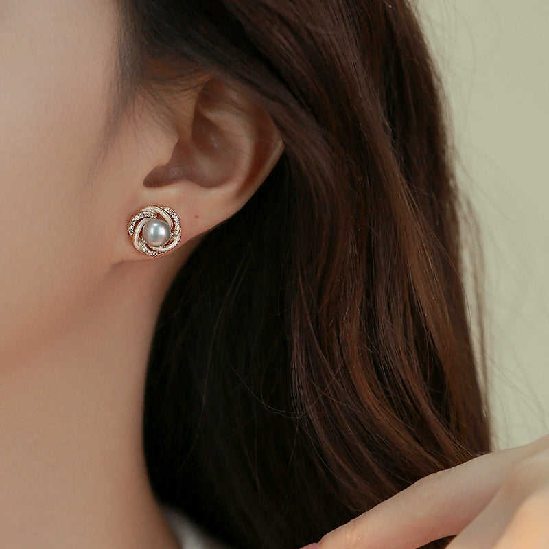 Pendientes de Perlas Naturales 1614 para Mujer, Diseño de Flor Envuelta en Circonita