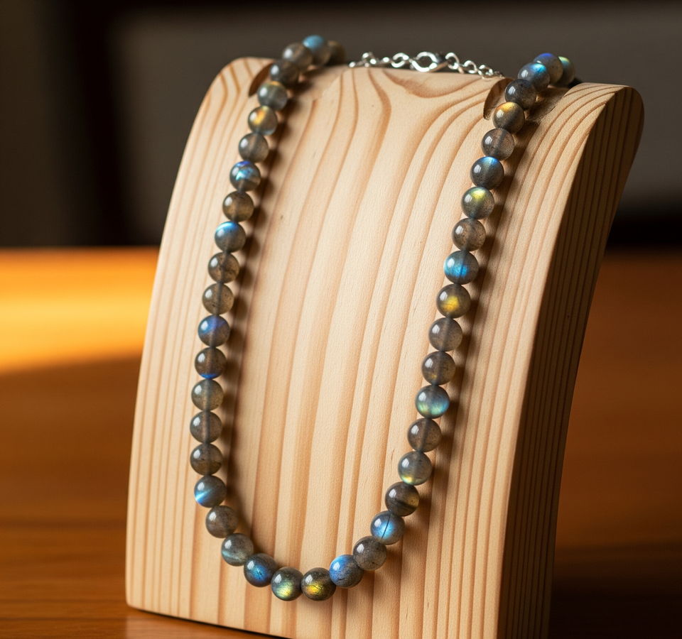 Accesorio de moda de diseño anudado a mano con candado 925 plateado de 18 pulgadas para mujer, regalo con cuentas de piedra labradorita Natural de alta calidad